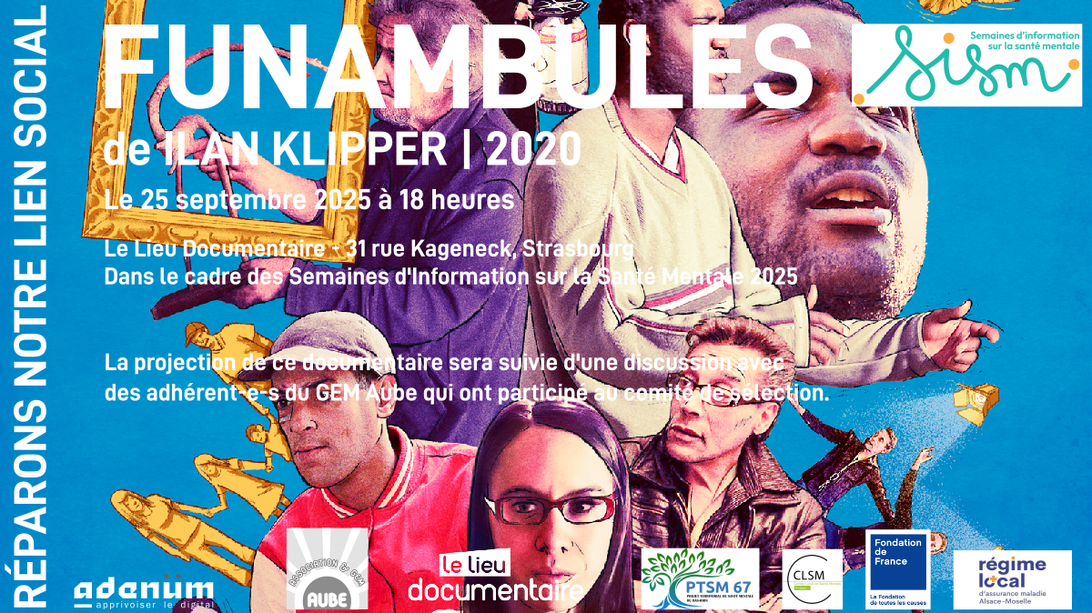 Retrouvez-nous le 25 septembre à 18 heures au Lieu Documentaire, 31 rue Kageneck à Strasbourg pour découvrir ce très beau film de Ilan Klipper, FUNAMBULES. Il s’agit du premier film du Cycle Documentaire "RÉPARONS NOTRE LIEN SOCIAL" organisé en partenariat avec le Lieu Documentaire et le GEM Aube.